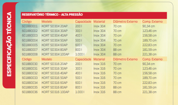 Disponível em Alta ou Baixa Pressão e Inox 304 e 316.