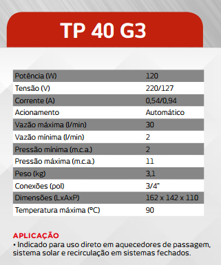 Possui baixo nível de ruído e pode ser instalada em qualquer aquecedor de passagem.